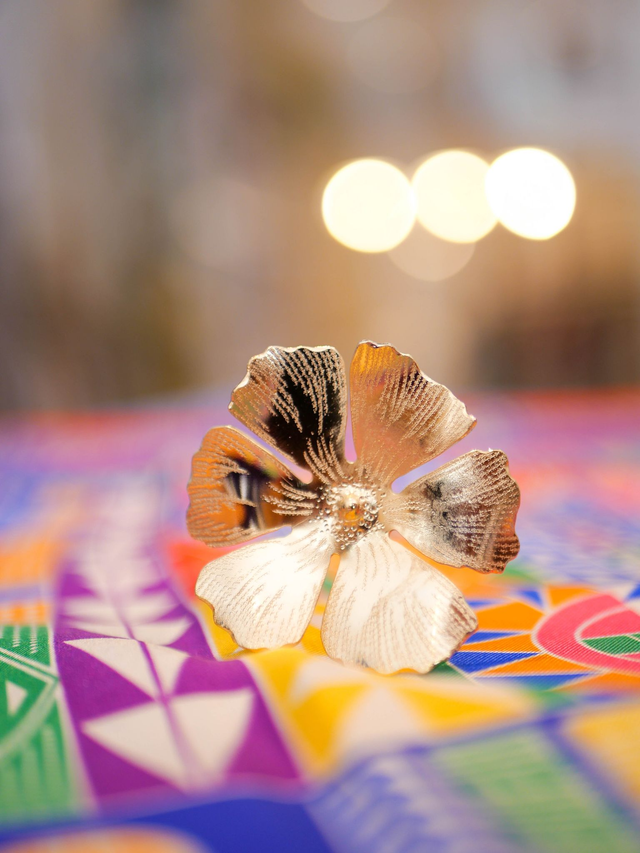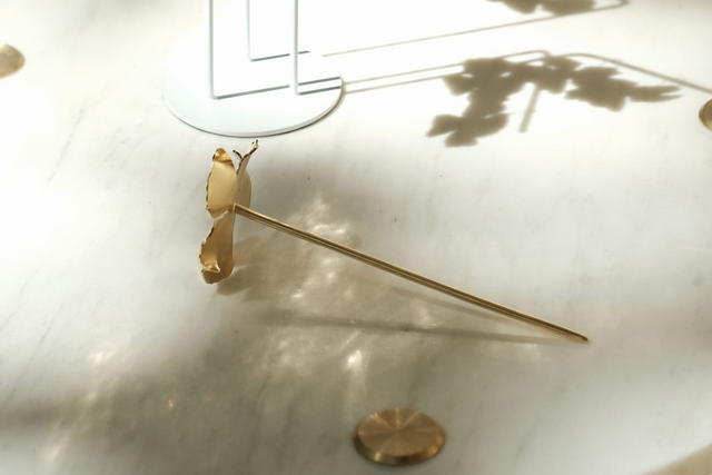 Pic à cheveux Hibiscus - Laiton ciselé doré