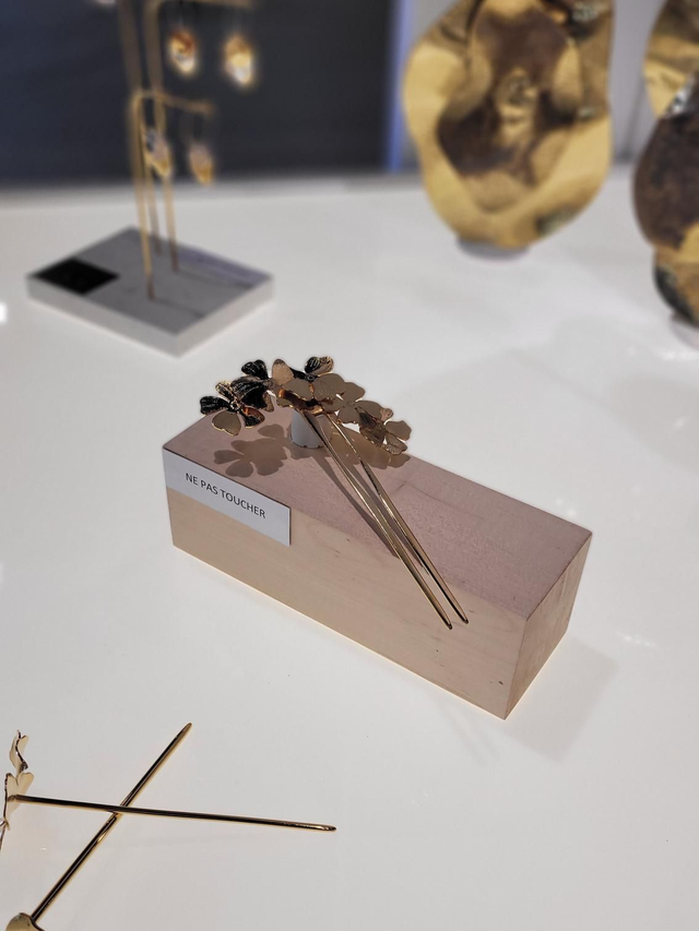Pic à cheveux Hibiscus - Laiton ciselé doré