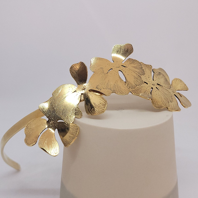 Tiare de mariage Hibiscus - Laiton ciselé doré